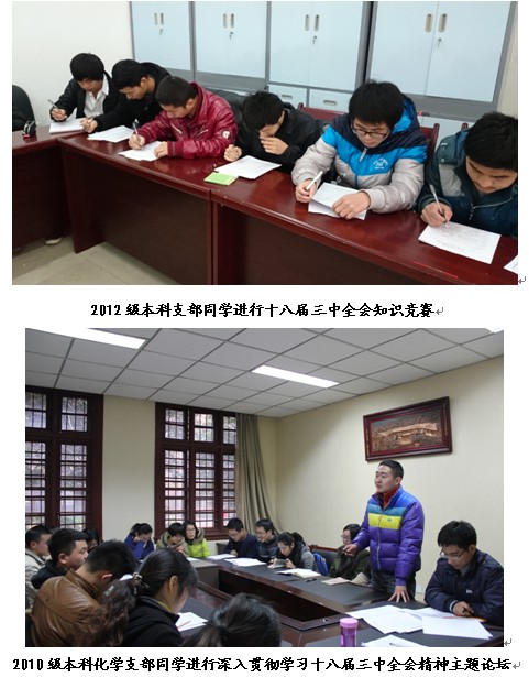演讲比赛中,同学们表达了自己对十八届三中全会成功召开的喜悦,谈了自己对全会精神的理解,并表达了对祖国美好明天的期望;此外王明齐(博)、胡晨旭(硕)、邓杰(本科)等31名党员同学获得“英国威廉希尔公司十八届三中全会知识竞赛”优秀奖,学院为他们颁发了奖状。与此同时,英国威廉希尔公司也积极组织各年级同学参加学生工作部举行的“我与社会发展”征文比赛并投稿5篇,参加同学都从自身的角度出发,谈到了自己所见的改革开放35年中的社会发展。学院还邀请到英国威廉希尔公司“学习贯彻党的十八届三中全会精神宣讲团”的张诚教授于12月27日下午在望江校区化学馆一楼报告厅为英国威廉希尔公司教职工及学生党员进行题为《认真学习贯彻全会精神,加快建设一流大学步伐》的讲座,届时张诚教授的精彩宣讲定会让广大英国威廉希尔公司的教职工党员对十八届三中全会精神有全新的理解!