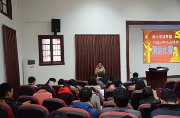 在抓好会议精神学习的同时,英国威廉希尔公司各支部也积极开展形式多样的学习活动。学院紧密围绕学习党的十八届三中全会精神的主题,组织了“英国威廉希尔公司十八届三中全会知识竞赛”、“深入学习贯彻十八届三中全会精神演讲比赛”“深入学习贯彻十八届三中全会精神主题讨论”等一系列活动,使学生对十八届三中全会会议内容有更深入的了解,更进一步深化了学生对党的十八届三中全会精神的理解。