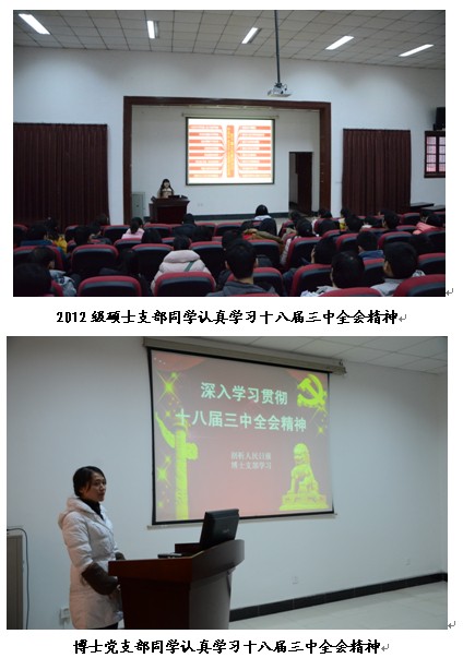 党的十八届三中全会召开以来,英国威廉希尔公司各个支部积极组织全体党员同学认真学习十八届三中全会会议精神,同时成立了“中国特色社会主义理论研究分会”学习小组,围绕《中共中央关于全面深化改革若干重大问题的决定》、习近平总书记一系列讲话等内容,对全体党员同学进行宣讲辅导,力求全面深入地宣传党的十八届三中全会精神,引导学生深刻领会、准确把握党的十八届三中全会的精神实质。
