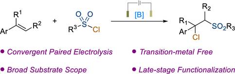 Organoboron-Promoted Electrochemical Chlorosulfonylation of Alkenes with Sulfonyl Chlorides, Org. Lett. 2024, 26, 4018-4023.