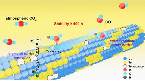Ultra-Durable Photoreduction of Atmospheric CO2 into Exclusive CO over Cu7Te4 Nanowires with Tellurium Vacancies. Small 2025, X, 2505052.