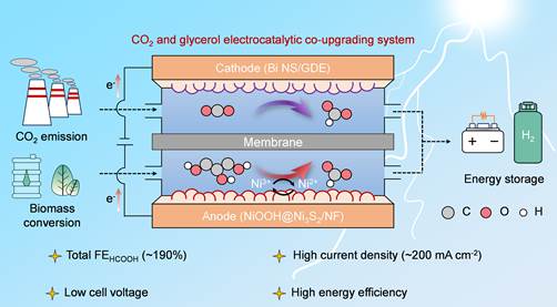 45. Dingwen Chen,+ Siheng Yang,+ Jing Gao,+ Xuan Zheng, Jiawei Mao, Qinyuan Hu, Xiaohan Sun, Li Ji, Xueli Zheng, Haiyan Fu, Weichao Xue, Hua Chen, Shuang Li, Chong Cheng, Jing Peng, Xingchen Jiao, Ruixiang Li,* Michael Grätzel,* Jiaqi Xu*. Electrochemical Co-upgrading CO2 and Glycerol for Selective Formate Production with 190% Overall Faradaic Efficiency under High Current Density. Nano Res. 2025, 18, 94907399.