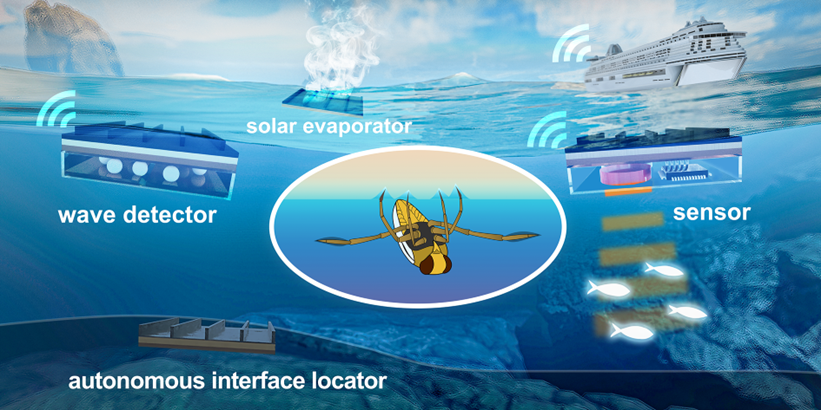 可靠的淡水与能源供应是目前全球可持续发展的关键。海洋中拥有巨量的水、矿物质及能量资源,探索和收集海洋资源具有显著意义,但目前的海洋探索设备多采用漂浮、悬浮和深潜模式进行工作,难以同时满足信号传输、能量采集和隐蔽性等方面的综合需求。