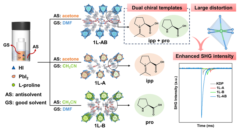 手性有机-无机杂化金属卤化物因其引人注目的光电性质以及在激光技术领域的潜在应用而受到广泛关注。采用手性有机胺和氨基酸作为模板剂是获取手性金属卤化物的有效途径。然而,手性有机模板剂的有限选择严重限制了手性金属卤化物的结构多样性及其非线性光学应用。