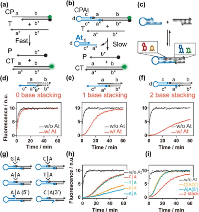 图1. 基于Anti-toehold调节的DNA链置换反应原理