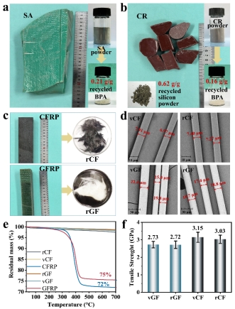 图2. 废弃结构胶、高压互感器用灌装树脂、玻璃/碳纤维增强环氧树脂复合材料的回收