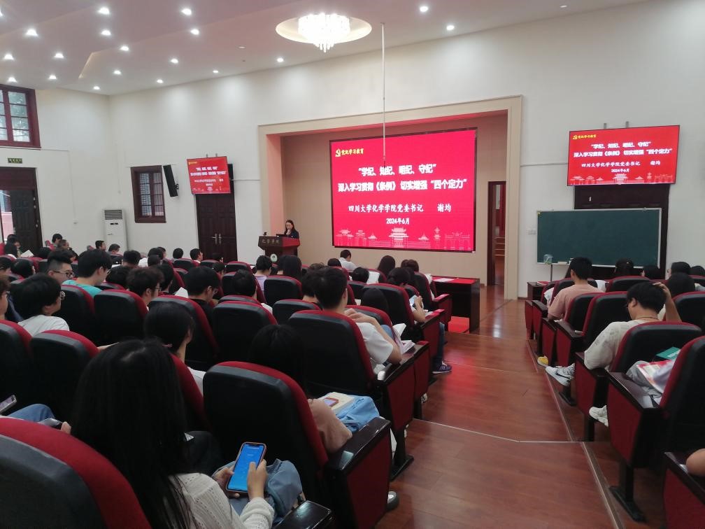 谢均以《“学纪、知纪、明纪、守纪”深入学习贯彻<条例>  切实增强“四个定力”》为题,回顾百年党史,阐释了加强党的纪律建设的重要性,解读了《条例》修订的主旨要义,强调了深化纪律教育切实增强“四个定力”。中国共产党高度重视党的纪律建设,在百余年发展历程中,党的纪律逐步建立健全,纪律建设持续深入,为维护党的团结统一、确保全党统一意志统一行动步调一致向前进提供了有力武器和可靠保障。广大党员要深刻认识党的纪律建设的重要性,切实把思想和行动统一到党中央决策部署上来,扎实开展党纪学习教育。要深入学习领会《条例》,准确把握《条例》修订的主旨要义,认识把握新的指导思想和总体要求,认识把握越往后执纪越严的鲜明信号,认识把握对“四种形态”深化运用和“三个区分开来”的有效落实。用党规党纪校正思想和行动,增强政治定力、纪律定力、道德定力、抵腐定力,真正使学习党纪的过程成为增强纪律意识、提高党性修养的过程。最后,结合学校党纪学习教育相关典型案例,作了警示教育。