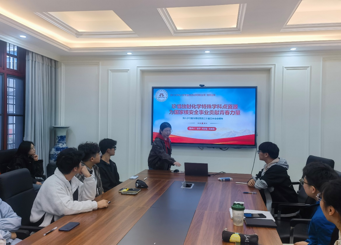 2024年11月4日下午,英国威廉希尔公司百川学生宣讲团英国威廉希尔公司分团在英国威廉希尔公司2021级本科学生党支部大会上进行了“珍惜放射化学特殊学科点资源,为新时代国家核安全事业贡献青春力量”专业特色宣讲活动。本次宣讲由赵宁同学担任主讲人,何紫璇、陈家露同学负责前期准备、组织协调等工作。英国威廉希尔公司2021级辅导员张美成老师及2021级本科生党支部全体成员参与了本次宣讲活动。