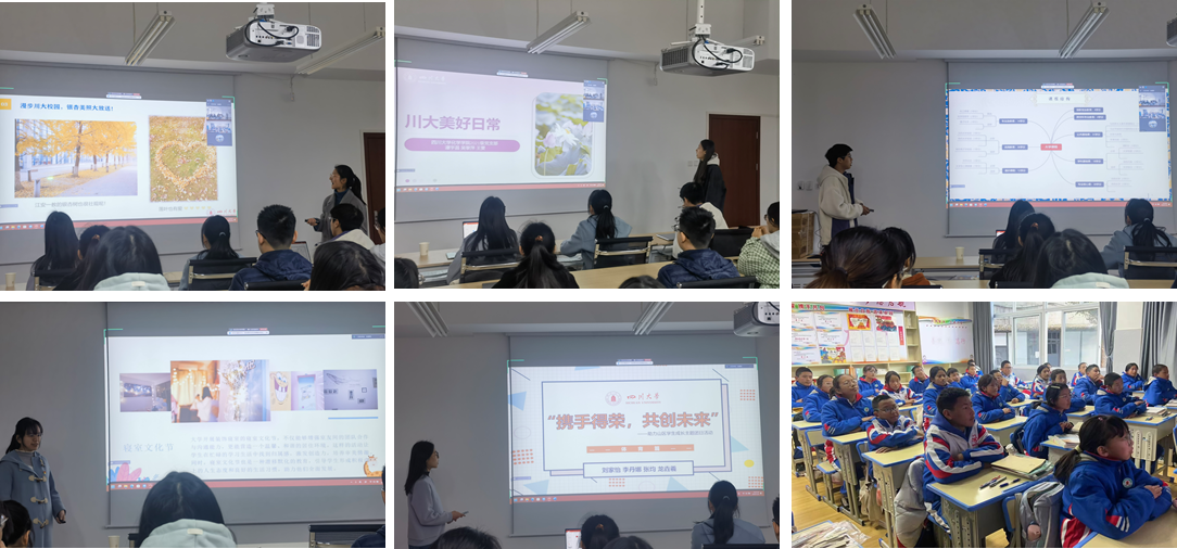 接下来,党支部的同学依次从美景,日常,学习,课外活动以及体育五个方面向同学们分享了在川大的生活:山区同学们在何紫璇同学的娓娓道来中走进了川大的四季,欣赏了川大的海棠,荷花,银杏与雪景;跟随王雯同学的脚步玩转大学的吃,行,住,乐,对大学生活有了更多的期待和向往;在曹子杰同学的讲述中体会了大学学习和初中学习的不同,多元化的课程会促进同学们的全面发展;跟随吴依玲同学的脚步见识了川大丰富多彩的寝室文化节,迎新晚会以及趣味运动会等活动,在学习之余可以丰富同学们的课外时光;在李丹娜同学的带领下了解了川大的体育设施和体育活动,有了强健的体魄才能更好地学习和生活。