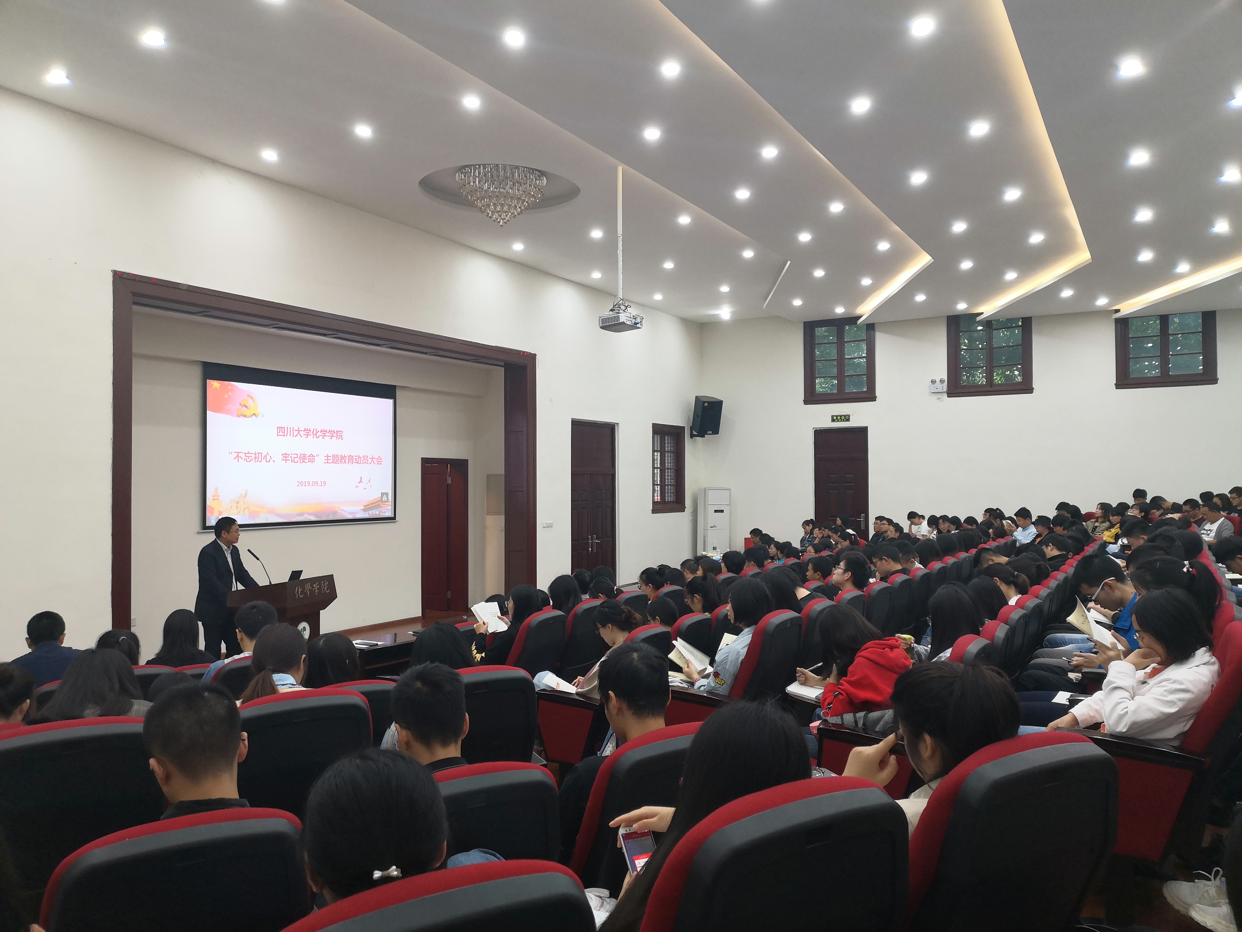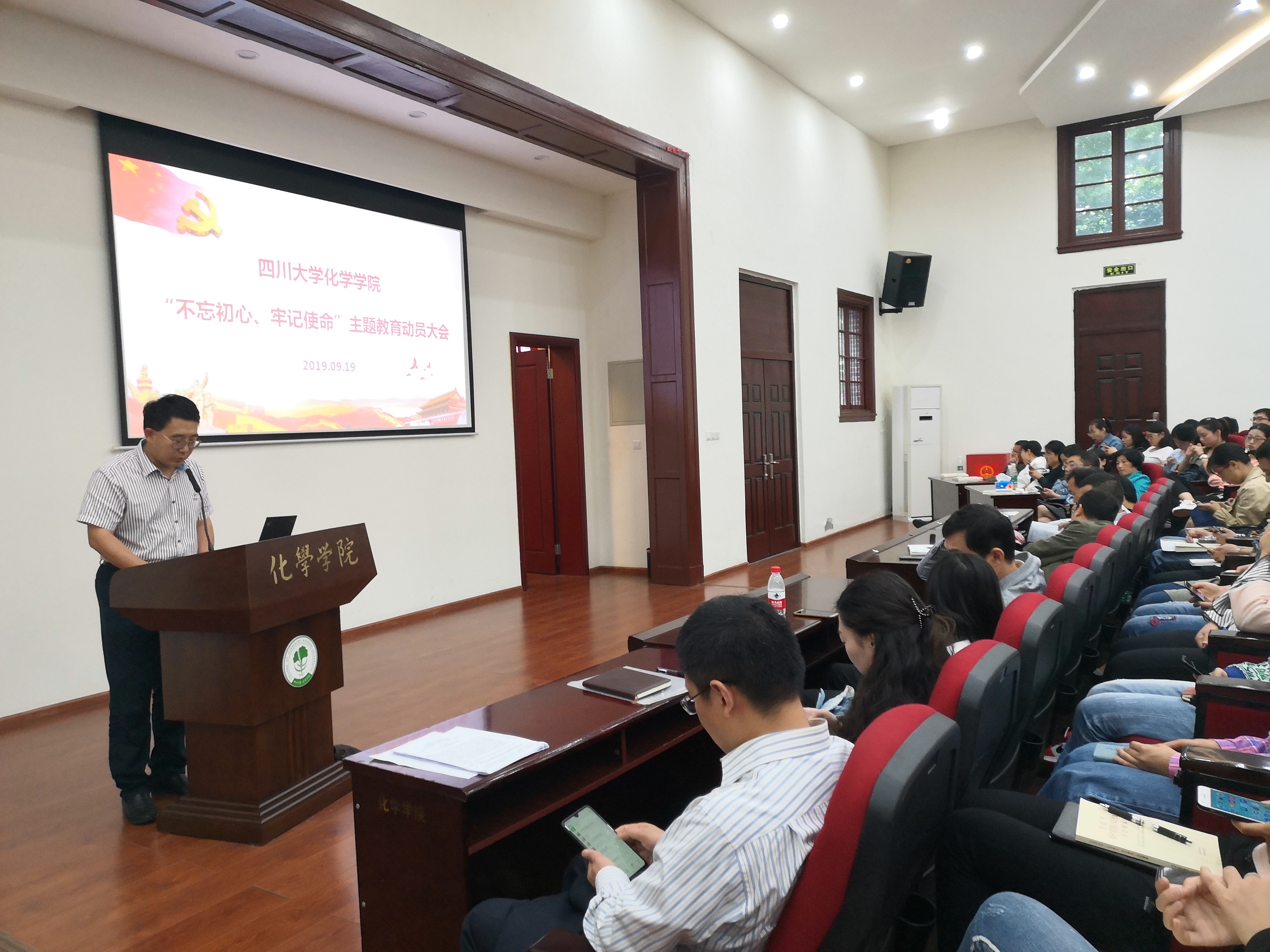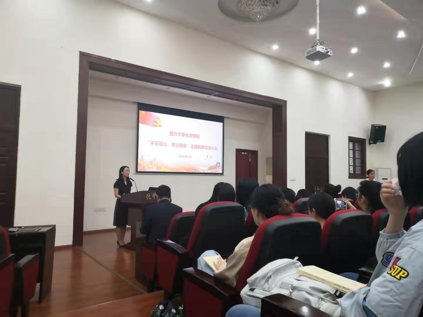 2019年9月19日,英国威廉希尔公司在望江校区化学管321举行了“不忘初心,牢记使命”主题教育动员大会。学校第五指导组组长、研究生院副院长兼研究生工作部部长李栓久、组织部副部长管清贵、“双一流”及质量评估办公室尹怡副处长以及其他小组成员莅临了本次动员大会。
