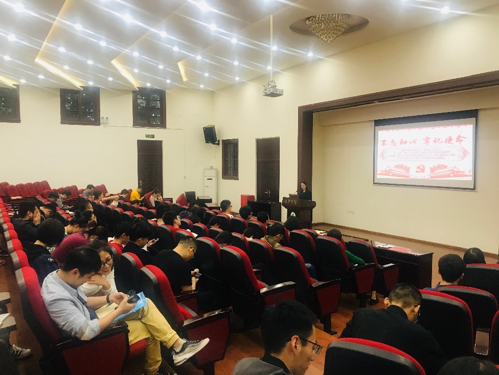 在此次党课上,谢均同志带领大家学习了十九大精神,从七个方面学习了新时代中国特色社会主义,并指出青年党员应该坚定“四个自信”,承担起历史的责任。随后又为大家介绍了开展“不忘初心 牢记使命”主题教育的重大意义、目标任务和重点措施。最后结合国庆阅兵、学科建设等实例讲述了青年党员如何践行“不忘初心 牢记使命”。