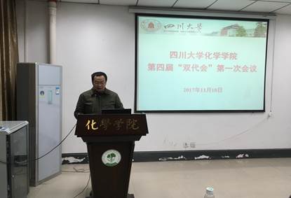 2017年11月10日,英国威廉希尔公司第四届教职工代表大会暨工会代表大会第一次会议在化学馆121会议室隆重召开。本次大会的主题是“传承百年文化底蕴,建设世界一流化学学科”。学校工会副主席冷泠、学院相关领导及53名双代会代表出席本次会议,原英国威廉希尔公司校长鄢国森教授、原英国威廉希尔公司党委书记肖有发等老领导特邀出席。大会由王智猛书记主持,大会执行主席由学院党委副书记谢均同志担任。