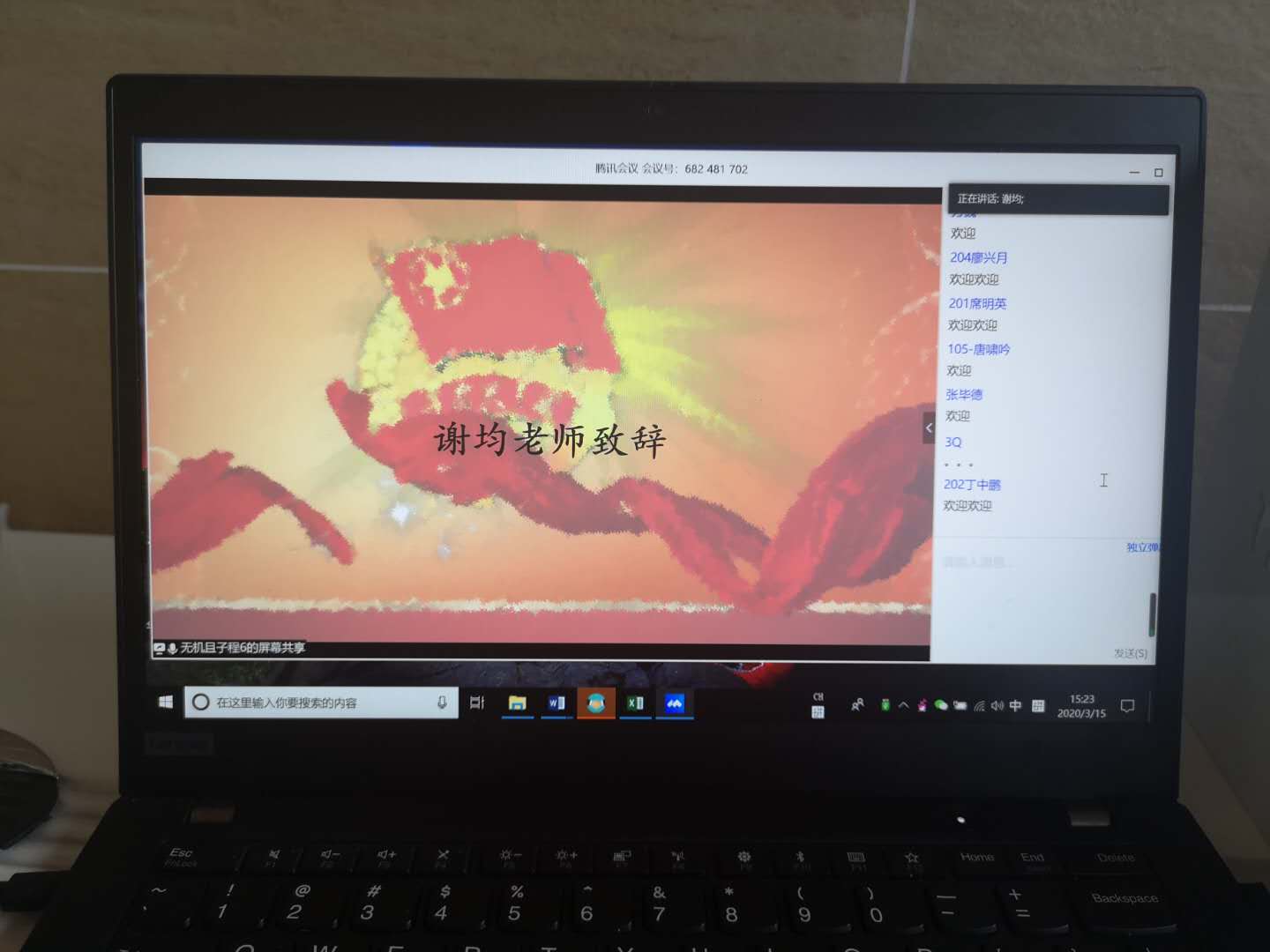 2020年3月15日,英国威廉希尔公司党委副书记谢均老师通过腾讯会议平台以“打赢抗疫攻坚战,书写青春正能量”为主题,为2019级本科学生上了一堂生动的线上思政专题课。