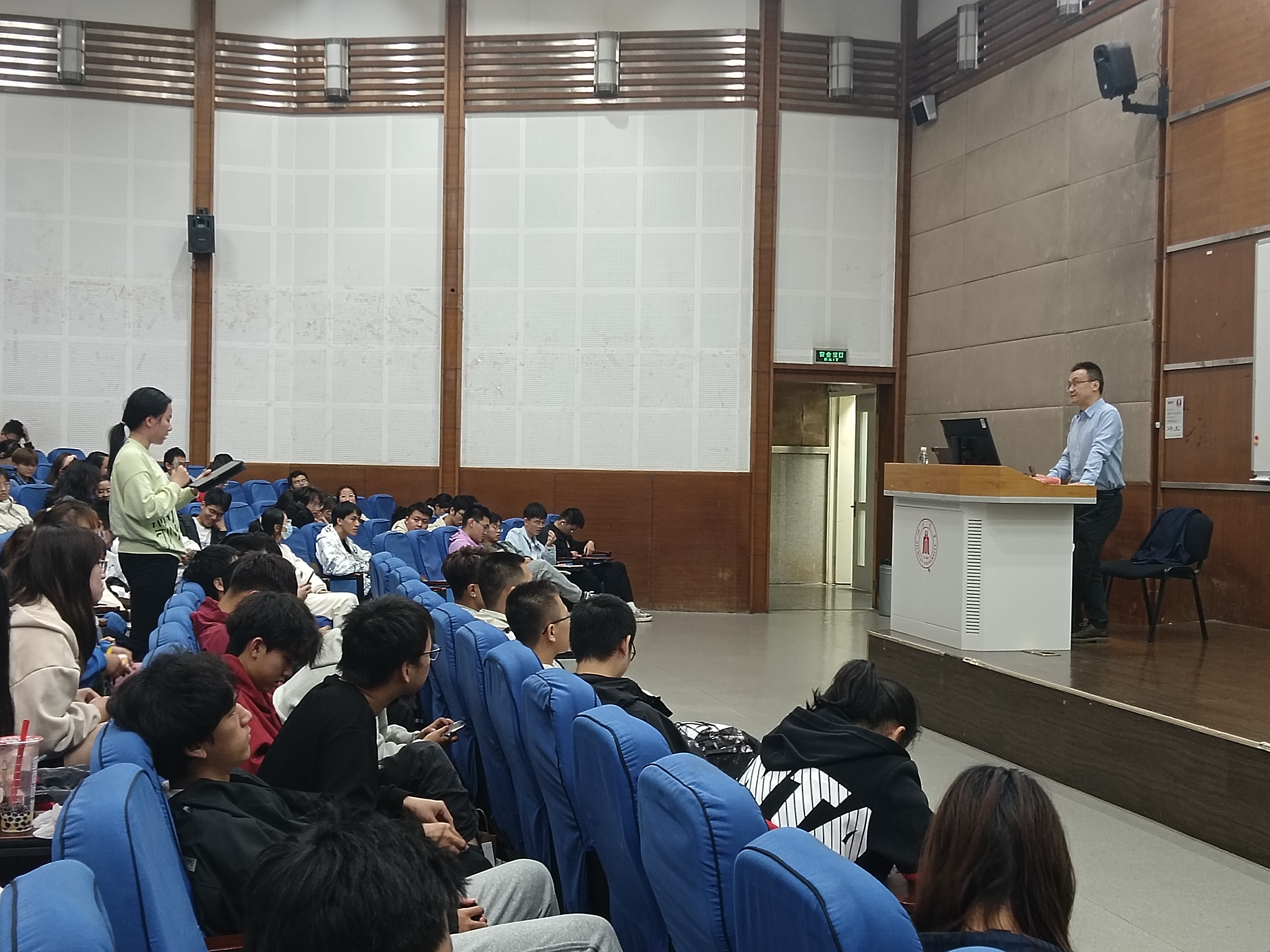 在讲座的最后,3位同学积极踊跃地向杨成老师进行了关于讲座内容的提问,杨老师也分别对其做了耐心解答。在本次讲座中同学们不仅了解了化学中的各种尺度,还受到了杨老师对学生培养批判性思维的热情鼓舞,受益匪浅。