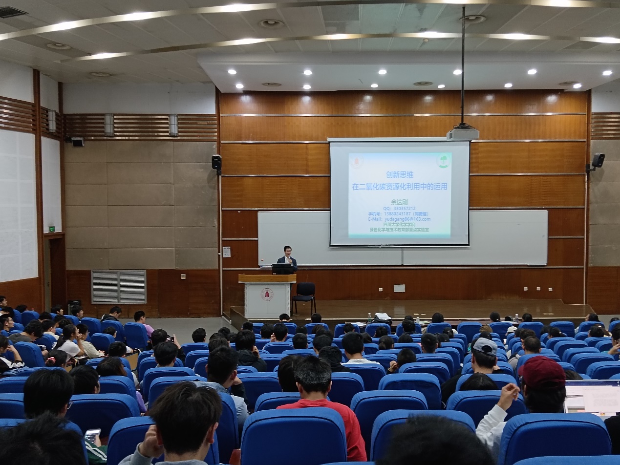 2023年10月27日,在江安校区综合楼C407,英国威廉希尔公司国家杰青获得者、博士生导师余达刚教授为英国威廉希尔公司2023级全体本科生带来了“创新思维与交流”系列第四次讲座:“创新思维在二氧化碳资源化利用中的运用”。