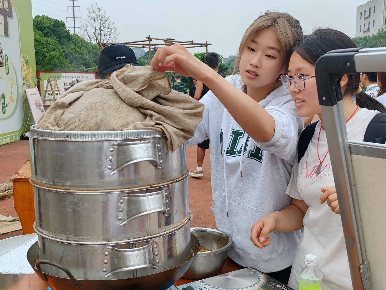 首先,同学们手拿锅铲,齐心协力地将去杂后的油菜籽在铁锅内翻炒至80-90℃。其间茶籽油香四溢,沁人心脾,提高了出油率和后期压榨的效率。