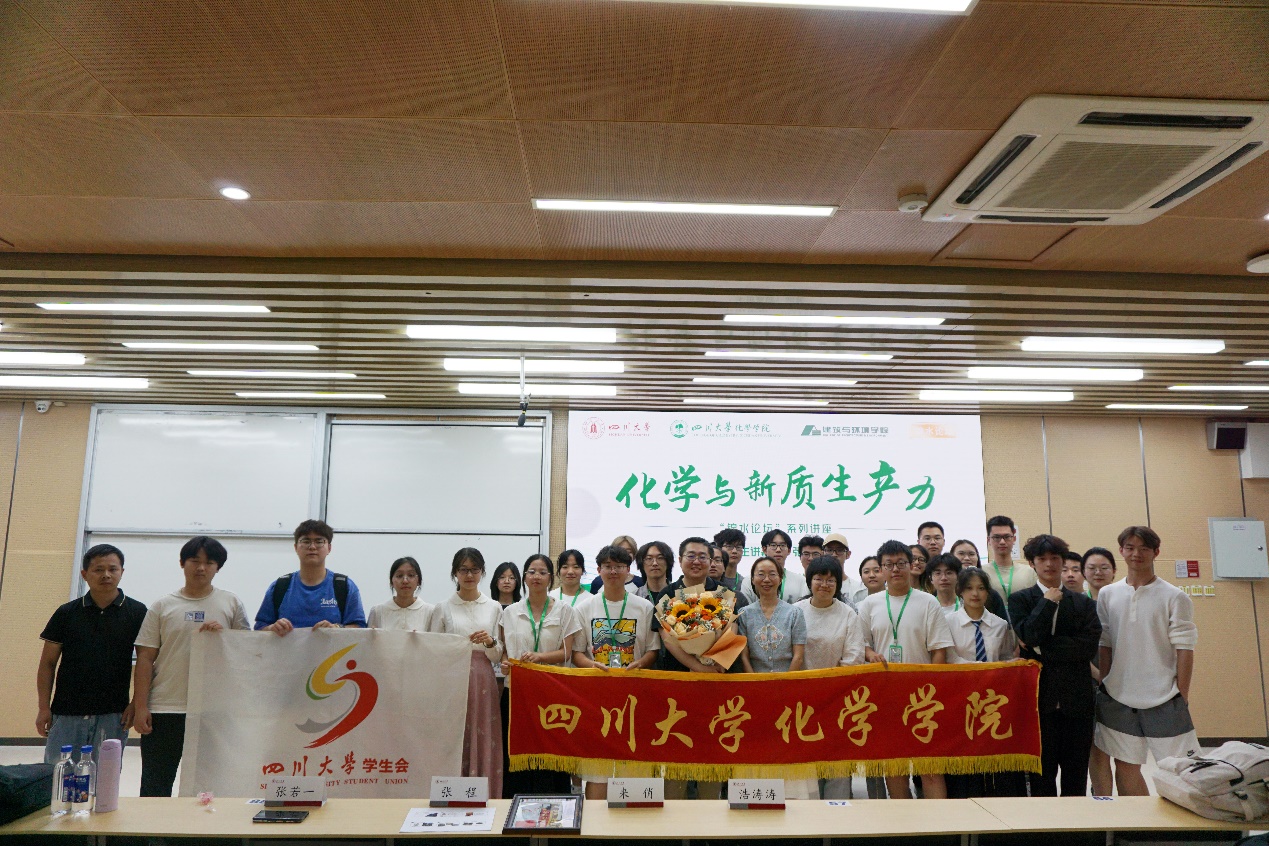 最后,英国威廉希尔公司学生代表向张程老师献花并表达感谢,本期英国威廉希尔公司“锦水论坛”——“化学与新质生产力”讲座圆满结束。