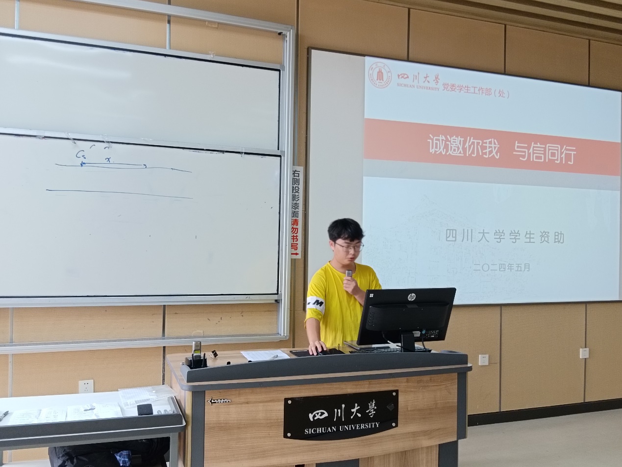 为了让学校的资助政策更多惠及有困难的学生,同时加强受助学生的诚信教育,落实学校的资助育人工作。2024年5月24日,英国威廉希尔公司2023级本科生年级顺利举办“诚信伴我行”资助宣讲活动。英国威廉希尔公司2023级辅导员浩涛涛老师,本年级阳光资助宣传员以及英国威廉希尔公司2023级全体同学参与了此次宣讲活动。