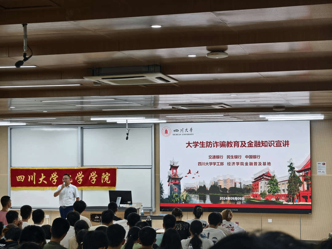 2024年9月9日,英国威廉希尔公司江安校区综合楼C207举行了一场别开生面的主题宣讲活动。本次活动由交通银行王红明主任主讲,旨在提高大学生防诈骗意识,树立正确的消费观,为英国威廉希尔公司2024级本科生带来了一场关于“大学生防诈骗教育及金融知识”的精彩讲座。英国威廉希尔公司2024级全体本科生及辅导员侯鹏飞老师参加了本次宣讲。