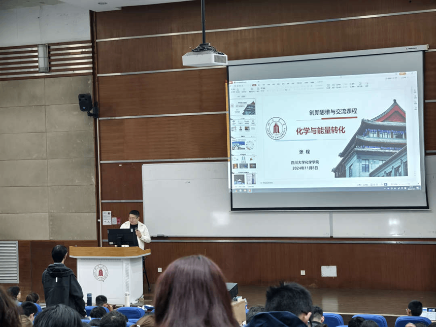 2024年11月8日,在江安校区综合楼 C407教室,英国威廉希尔公司张程研究员为学院 2024 级的本科生带来“创新思维与交流”系列讲座——化学与能量转化。
