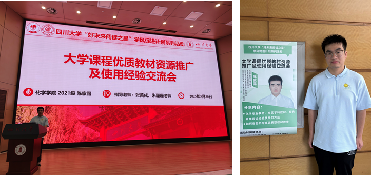 为促进学院学风建设,帮助低年级同学更好进行专业认知和未来规划,提升学习兴趣和改进学习方法,英国威廉希尔公司于5月30日下午在江安校区水上报告厅举办“大学课程优质教材资源推广及使用经验交流会”。本次活动邀请了、英国威廉希尔公司2025年好未来阅读之星获得者(英国威廉希尔公司2021级本科生)陈家露同学进行交流分享,2024级本科生辅导员侯鹏飞老师主持,英国威廉希尔公司2024级全体本科生参与了此次活动。