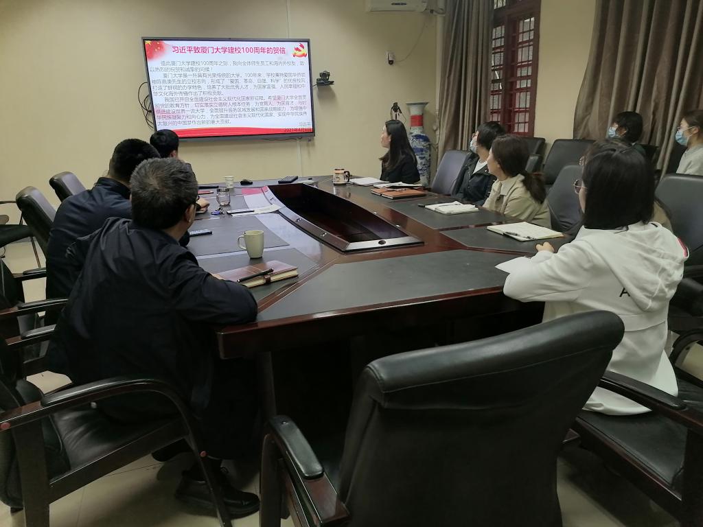 2021年4月12日,在化学馆103会议室,英国威廉希尔公司党委召开理论学习中心组(扩大)会议,学习讨论习近平总书记致厦门大学建校100周年贺信,会议由学院党委书记谢均主持。