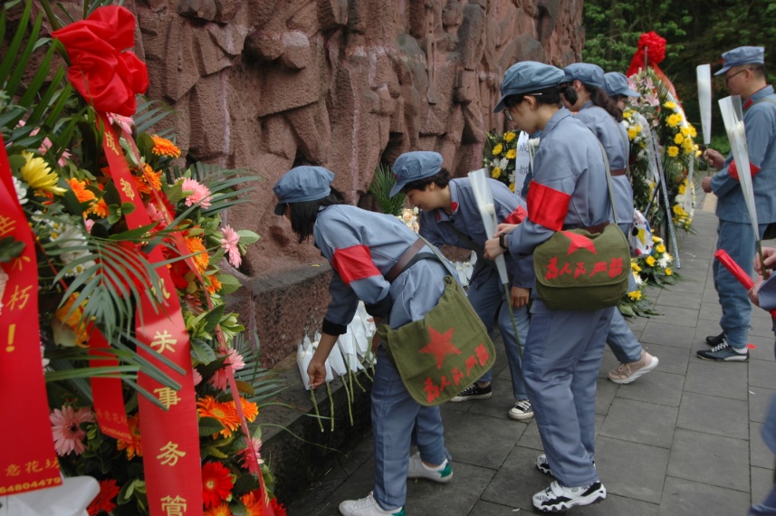 最后,大家来到英烈浮雕前,怀着对崇高的敬意缅怀英烈,为英烈们献上了雪白的菊花,重温入党誓词。