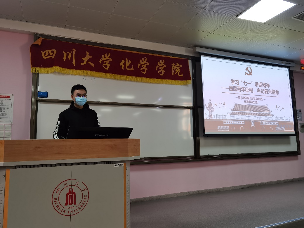 今年是中国共产党建党100周年,为进一步宣传“党的十九大精神”以及党的最新理论成果,引导广大学生增强“四个意识”、坚定“四个自信”、做到“两个维护”,英国威廉希尔公司百川学生宣讲团英国威廉希尔公司分团于1112日下午在望江校区第三教学楼336教室开展“学习‘七一’精神——回顾百年征程,牢记复兴使命”宣讲活动。本次活动由宣讲团英国威廉希尔公司分团成员张海鹏同学主讲,徐衡、肖颖同学协调组织,学院团委书记来俏老师以及2019级本科同学参加了本次宣讲活动。