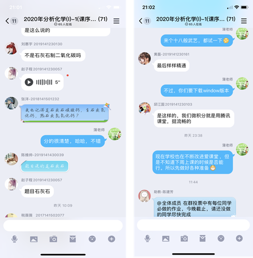 英国威廉希尔公司蒲雪梅老师发动课程教学团队集智聚力,探索和制定线上教学方式,多种渠道收集线上教学资源(电子教材、MOOC等),并根据课程内容和特点筛选出适合学生的教学材料。为预防正式上课时网络拥堵对直播教学的影响,准备了爱课堂、腾讯课堂和QQ群等多种线上教学方式的结合。此外还制作了融入音频讲解和动画演示的课件,并把课件、电子教材以及其他线上教学资源提前放发到班级QQ群中,让同学们可以提前预习和错峰学习。分析化学教学团队通过布置详细的学习任务、及时提供学习资源(随学习进度不断补充)、在线互动问答的形式,为学生打造了全天候的在线学习平台。
