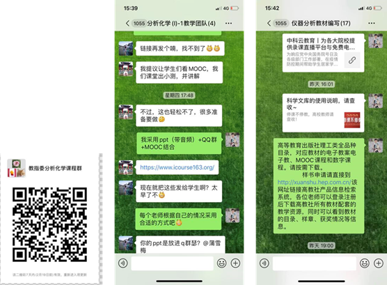 分析化学教学团队探索线上教学模式的一个创新是注重课程联动。蒲雪梅老师利用爱课堂网络平台将“分析化学”课程的回放链接、直播及录播课程和知识点答疑同时关联到QQ群里,避免了上课时网络拥堵对教学的影响,为学生打造了全天候的在线学习平台。随着本学期教学任务不断进行,教学团队期望这种课程联动方式能够带来不一样的教学效果。