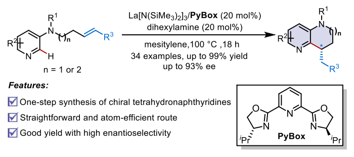 13.Zhang, J.; Ning, L. C.; Qiu, Y.; Ji, M. H.; Wang, S. Y.; Wang, Y. J.; Wang, F.; Feng, X. M.; Dong, S. X.* Enantioselective Intramolecular C–H Alkylation of Pyridine Derivatives with Alkene by Rare-Earth Catalysts: Facile Synthesis of Chiral Tetrahydro-1,5-naphthyridines. Chin. Chem. Lett. 2025, DOI: 10.1016/j.cclet.2025.111442.