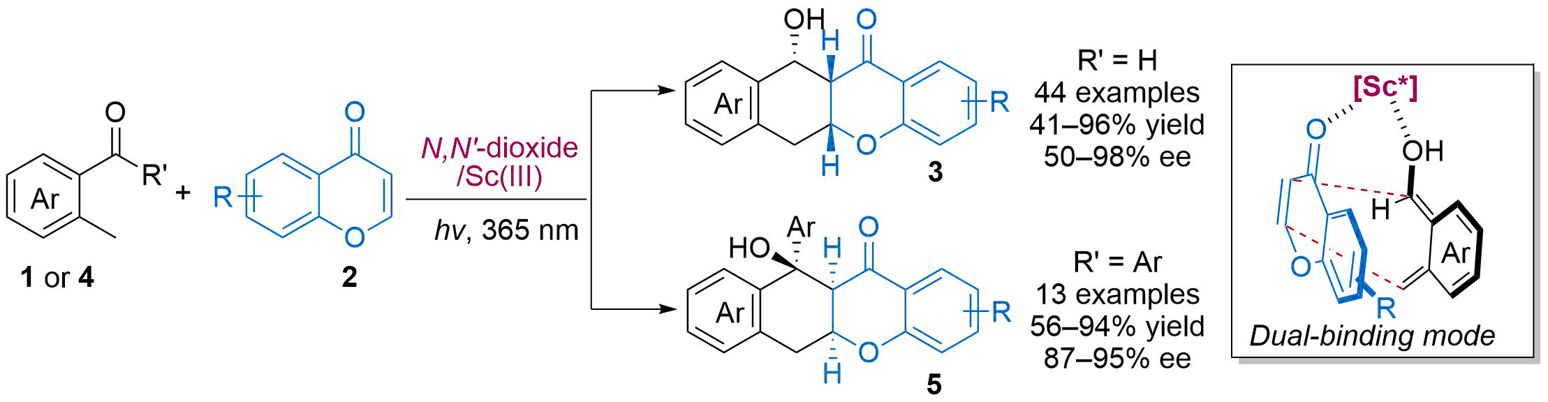 18.Mo, Y. H.; Ning, L. C.; Luo, Z.; Yang, L. K.; Tang, S.; Dong, S. X.* Zhou, Q. L.; Feng, X. M.* Asymmetric Photoenolization/Diels-Alder Reaction of 2-Methylbenzaldehydes and 2-Alkylbenzophenones with Chromones. ACS Catal. 2024, 14, 6687.