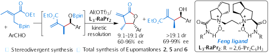 9.Tang, Q.; Fu, K.; Ruan, P. R.; Dong, S. X.*; Su, Z. S; Liu, X. H.; Feng, X. M.* Asymmetric Catalytic Formal 1,4-Allylation of β,γ-Unsaturated α-Ketoesters via Allylboration/Oxy-Cope Rearrangement. Angew. Chem. Int. Ed. 2019, 58, 11846.