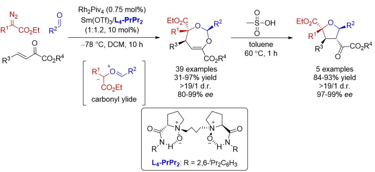 34.Xu, C. R.; Qiao, J. L.; Dong, S. X.*; Zhou, Y. Q.; Liu, X. H.; Feng, X. M.* Asymmetric Synthesis of Dihydro-1,3-Dioxepines by Rh(II)/Sm(III) Relay Catalytic Three-Component Tandem [4+3]-Cycloaddition. Chem. Sci. 2021, 12, 5458. This article is part of the themed collection: 2021 Chemical Science HOT Article Collection. Highlighted by Synfacts 2021, 17, 0518.
