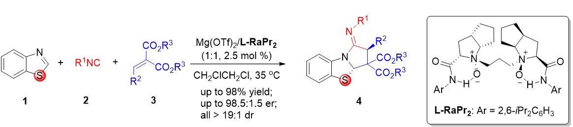 31.Dong, P.; Li, Z. J.; Liu, X. H.; Dong, S. X.*; Feng, X. M.* Asymmetric Synthesis of Polycyclic Spiroindolines via the Dy-catalyzed Cascade Reaction of 3-(2-Isocyanoethyl)indoles with Aziridines. Org. Chem. Front. 2022, 9, 4591.