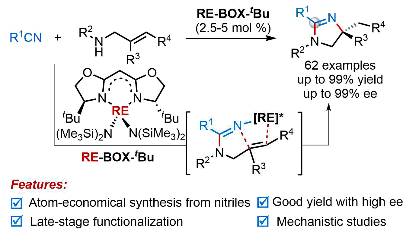 11.Zhu, C. H.#; Zhou, Y. Q.#; Zhang, J.; Li, J. F.; Zhang, Y. X.; Wang, F.; Feng, X. M.*; Dong, S. X.* Rare-Earth Metal Catalyzed Asymmetric Addition/Hydroamidination of Nitriles and Allylamines for the Concise Synthesis of Chiral Imidazolines. CCS Chem. 2025, 7, 148.