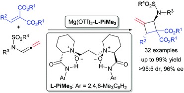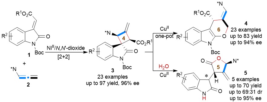 47.Zhong, X.; Tang, Q., Zhou, P. F.; Zhong, Z. W. Dong, S. X.*; Liu, X. H.; Feng, X. M.*, Asymmetric Synthesis of Polysubstituted Methylenecyclobutanes via Catalytic [2+2] Cycloaddition Reaction of N-Allenamides. Chem. Commun. 2018, 54, 10511. Highlighted by Synfacts 2018, 14, 1154.