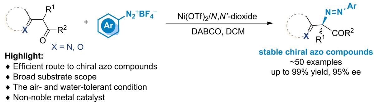 30.Wang, Y.; Yihuo, A. Y.; Wang, L. F. Dong, S. X.*; Feng, X. M.* Catalytic Asymmetric Synthesis of Chiral Azo Compounds via Interrupted Japp–Klingemann Reaction with Aryldiazonium Salts. Sci. China Chem. 2022, 65, 546.