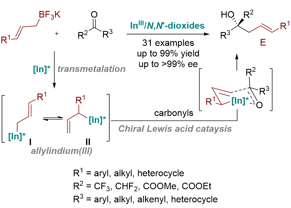 32.Tang, X. X.; Su, Z. S.; Lin, Q. C.; Lin, L. L.; Dong, S. X.*; Feng, X. M.* Asymmetric Catalytic α-Selective Allylation of Ketones with Allyltrifluoroborates using Dual-functional Chiral InIII/N,N′-dioxide Complex. Chin. J. Chem. 2022, 40, 1793.