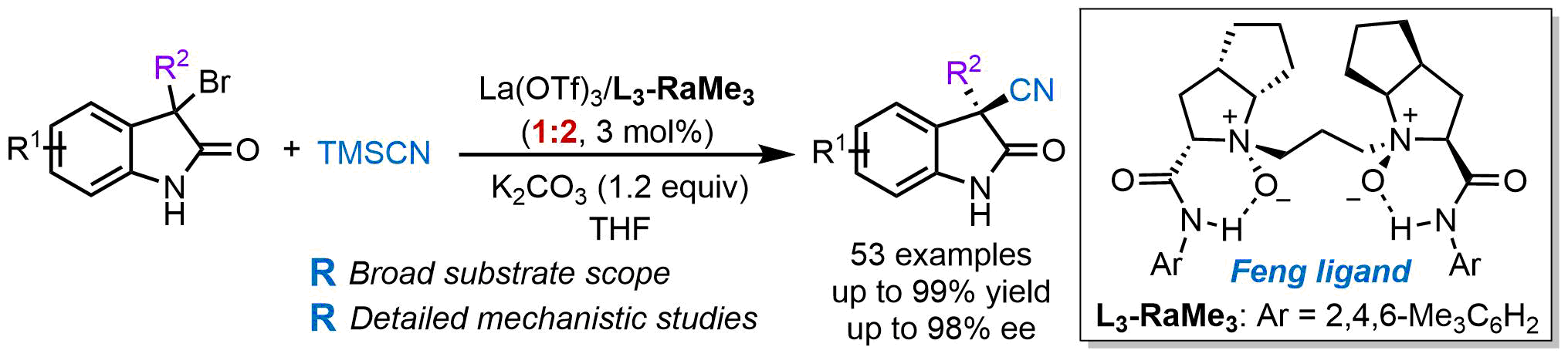17.Zeng, Z.#; Yang, L. Q. #; Xiao, Z. J.; Chen, L.; Zhong, Z. W.; Wang, F.; Liu, X. H.; Dong, S. X.*; Feng, X. M.* A Remarkable Influence of La(III)/N,N'‑Dioxide Structure on Asymmetric Formal Substitution of 3‑Bromo-3-substituted Oxindoles with TMSCN. ACS Catal. 2024, 14, 2908.