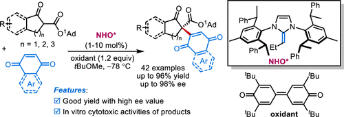 29.Wang, S. J.; Yang, J.; Zeng, H. H.; Zhou, Y. Q.; Wang, F.; Feng, X. M.; Dong, S. X.* Asymmetric Formal Coupling of β-Ketoesters with Quinones Promoted by a Chiral Bifunctional N-Heterocyclic Olefin. Org. Lett. 2023, 25, 7247.