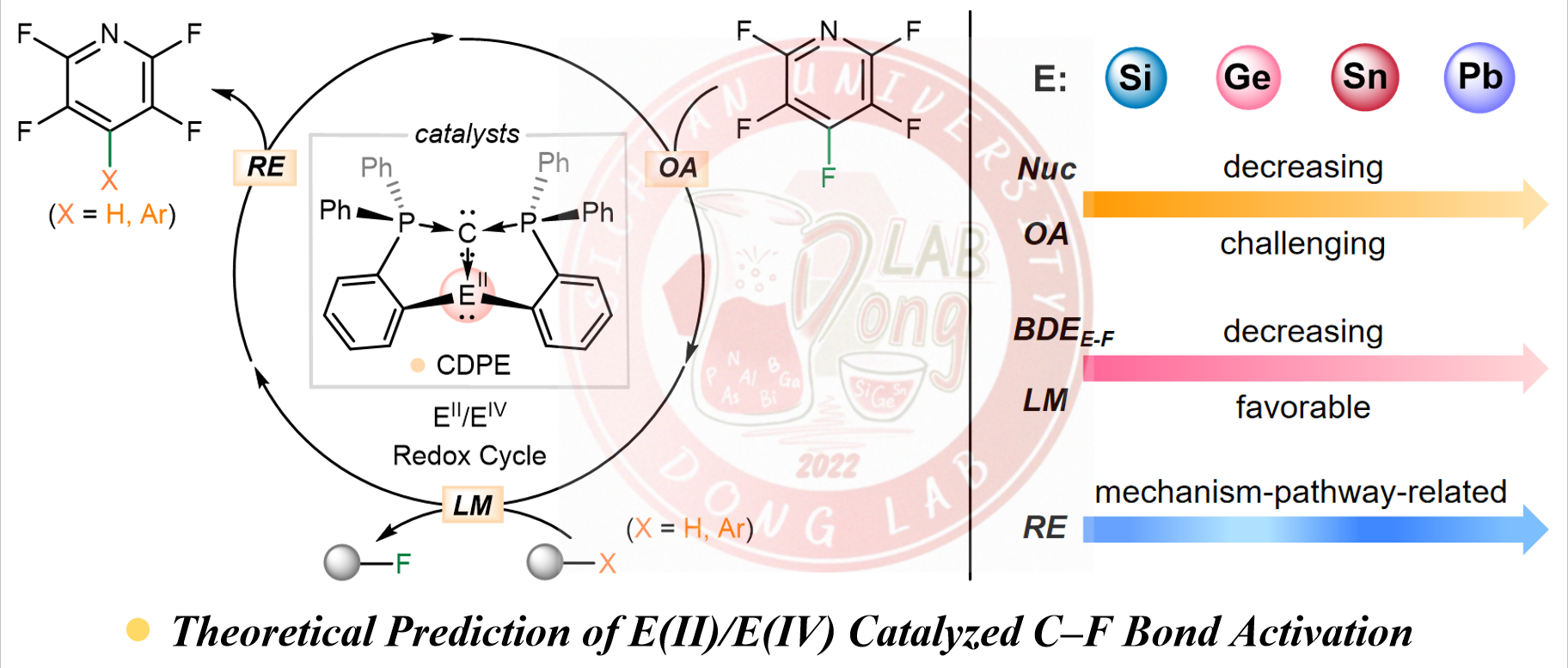 10. Huan Mu, and Zhaowen Dong*, Mechanistic Insights into E(II)-Catalyzed (E = Si, Ge, Sn, Pb) C−F Activation/C−C Cross Coupling Reactions, Inorg. Chem. 2026, 65, 2060−2069.