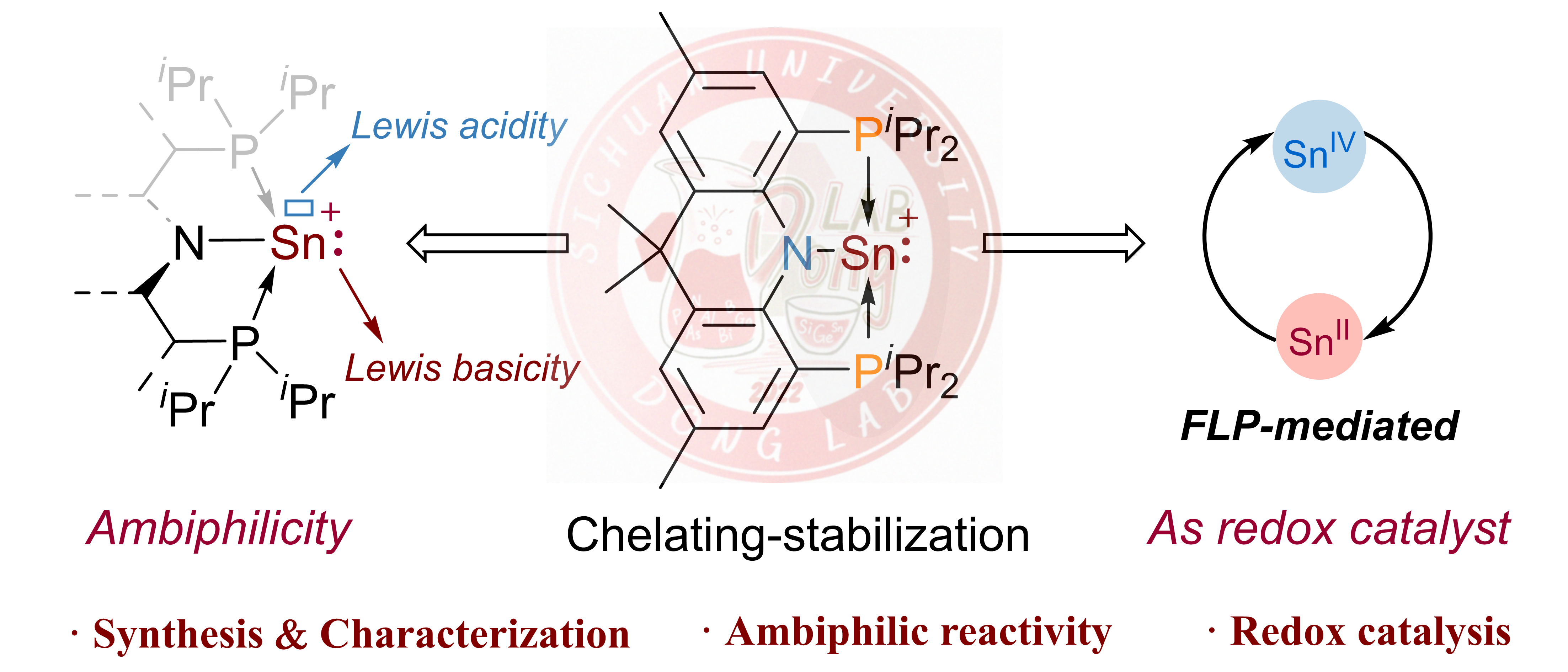 近年来,具有准金属特性的主族元素催化已发展成为有机催化领域的重要前沿方向,其通过利用地球储量丰富、环境友好的主族元素模拟过渡金属的催化行为,为发展绿色、可持续的合成化学提供了新范式。课题组研究工作聚焦于具有准金属特性的低价重十四族元素试剂的精准合成与催化性能,围绕"低价锗、锡试剂的高效创制与功能调控"这一关键科学问题,通过创新配体设计与合成策略,系统开展相关催化体系的构建与反应机制研究。