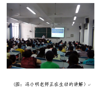讲座伊始,谢均老师先为同学们简单的介绍了冯小明教授的背景情况,同学们都以热烈的掌声和认真聆听的姿态表达心中的敬佩。接着冯小明老师从李克强的讲话入手谈及化学的重要性。以化学家在做什么,这一问题展开讨论,分别从化学与实用、化学与生物、化学与健康(生命)、化学与计算机等方面讲解化学的今天。然后就环境污染、资源枯竭等现状谈及化学的明天,化学的未来。