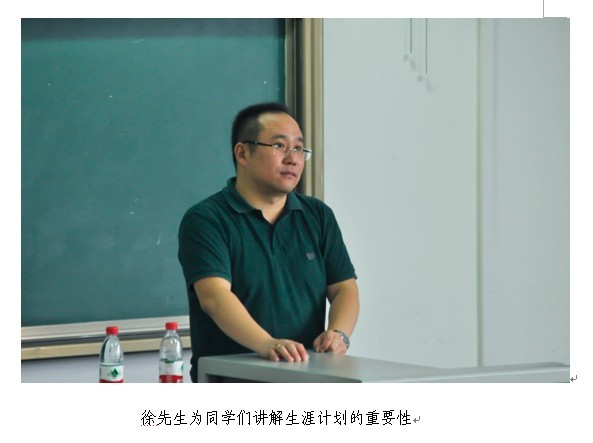 在开场的一句感慨之后,徐先生说,他来这里做讲座,是希望我们不要再走他的老路,希望能够让我们吸取他的教训,不再犯跟他一样的错误。徐先生缓缓道来他的人生经历,有成功也有失败,有顺风也有挫折。他通过阐述他的经历告诉我们,现在,就要好好为自己的人生做规划,这样才能让自己将来在社会上少一些迷茫。